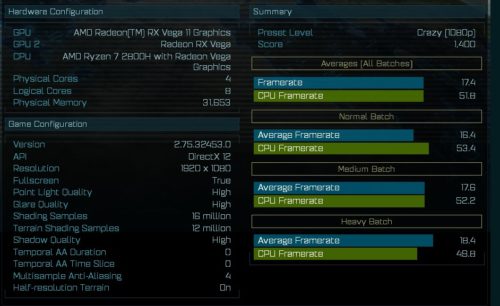 As for the integrated Vega graphics in these parts, Twitter user ‘TUM APISAK’ has posted a screenshot from the built-in benchmark in the strategy game Ashes of the Singularity, which seems to show the Ryzen 7 2800H and its integrated Vega 11 GPU.