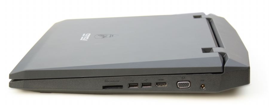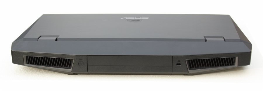On the other hand it won’t go unnoticed; it is slightly tilted towards the user for optimal ergonomics, and the huge air vents on the back of the laptop look a little like jet exhausts. The “landing gears” are the laptop’s thick rubber pads. The chiclet-style keyboard is backlit and in the center of the palmrest sits a large and comfortable multi-touch touchpad. Asus has obviously put a lot of thought into the overall design of this beast.
