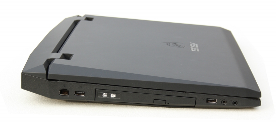 Besides a monster of a gaming laptop you also get some extras with the G73, including a very useful backpack plus a gamer mouse and a headset. The Republic of Gamers G73HJ itself is a fairly heavy machine of course, but not much heavier than the average 17-inch notebook. It’s built with a stealth bomber-inspired design, which includes a solidly built housing that matches the description. It certainly looks like a stealth bomber with an emphasis on stealth – it’s not as liberally decorated as some other gaming laptops. There are virtually no glossy plastics and the G73JH is all dressed in black with a soft coating material.